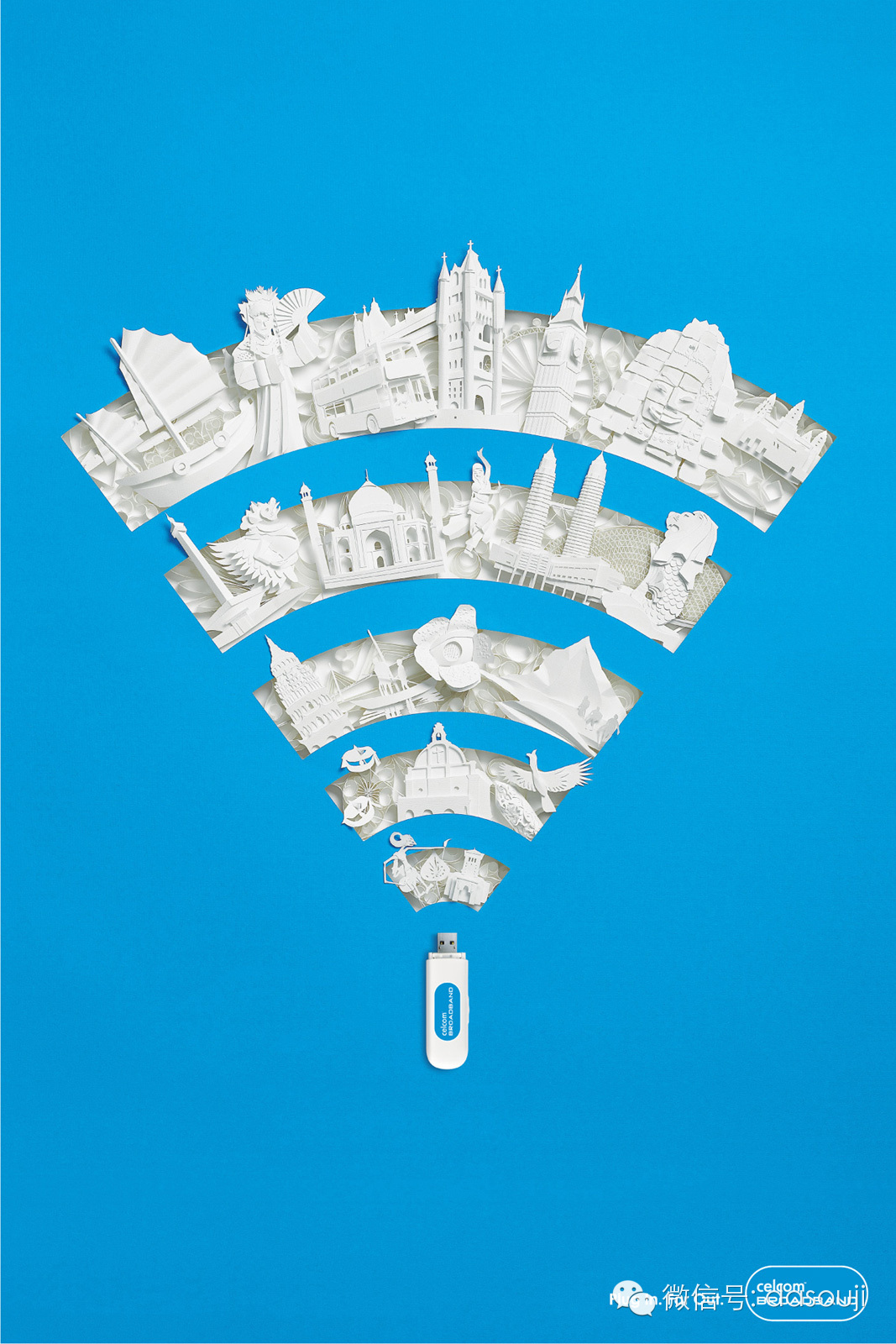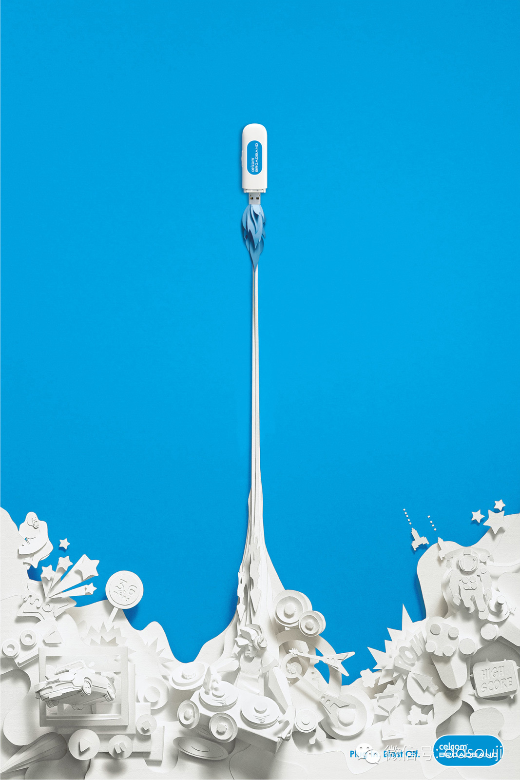 Celcom 无线网卡广告:Plug In. Watch away. U盘般的小身材却能带来海量的信息和资料,蓝、白两色让人耳目一新。