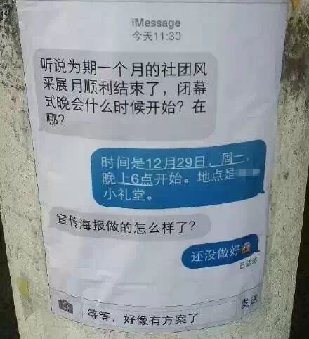 出现在南京某大学里的一幅宣传海报,这大概是史上最敷衍的宣传海报了吧。